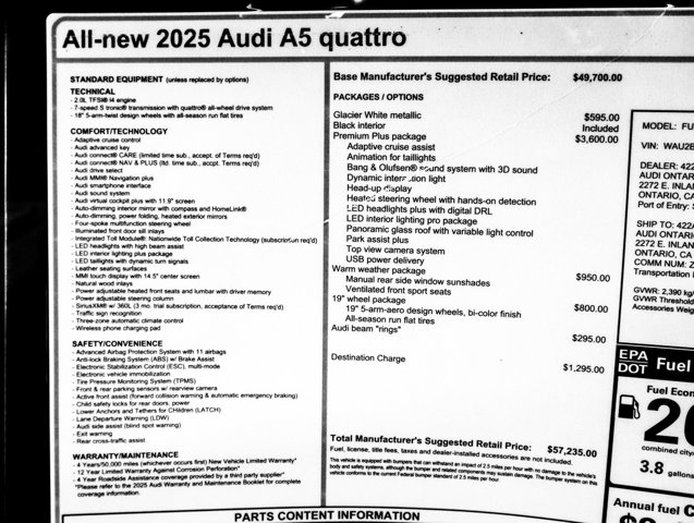 2025 Audi A5 Premium Plus at Audi Ontario