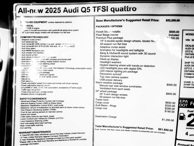 2025 Audi Q5 Premium Plus at Audi Ontario