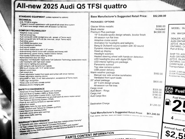 2025 Audi Q5 Premium Plus at Audi Ontario