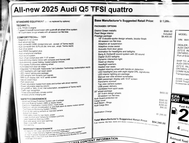 2025 Audi Q5 Prestige at Audi Ontario