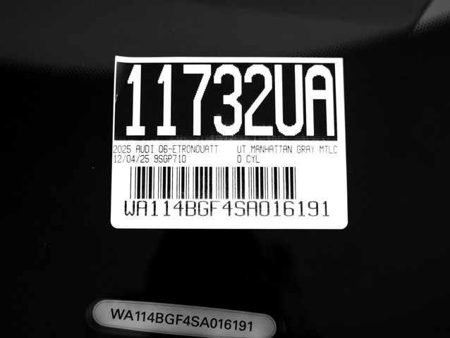 Power Liftgate Rear Cargo Access, Back-Up Camera, Audi parking system plus Front And Rear Parking Sensors, Leatherette Door Trim Insert, Day-Night Auto-Dimming Rear view Mirror, Black Side Windows Trim and Black Front Windshield Trim, Trunk/Hatch Auto-Latch, Tailgate/Rear Door Lock Included w/ Power Door Locks, Smart Device Integration, Side Impact Beams. This Audi Q6 e-tron has a strong Electric engine powering this Automatic transmission.* Experience a Fully-Loaded Audi Q6 e-tron Premium *Seats w/ Leatherette Back Material, Regenerative 4-Wheel Disc Brakes w/ 4-Wheel ABS, Front and Rear Vented Discs, Brake Assist, Hill Hold Control and Electric Parking Brake, Rain Detecting Variable Intermittent Wipers w/ Heated Jets, Power Door Locks w/ Autolock Feature, Power 1st Row Windows w/ Front And Rear 1-Touch Up/Down, Perimeter/Approach Lights, Outside Temp Gauge, Outboard Front Lap And Shoulder Safety Belts w/ Rear Center 3 Point, Height Adjusters and Pretensioners, Multi-Link Rear Suspension w/ Coil Springs, Manual Adjustable Front Head Restraints and Manual Adjustable Rear Head Restraints, Lip Spoiler, LED Brakelights, Leather Steering Wheel, Leather Seating Surfaces, Gas-Pressurized Shock Absorbers, Galvanized Steel/Aluminum Panels, Full Cloth Headliner, Front Fog Lamps, Front and Rear Anti-Roll Bars, Fade-To-Off Interior Lighting.* Visit Us Today *Come in for a quick visit at Audi Ontario, 2272 E. Inland Empire Blvd, Ontario, CA 91764 to claim your Audi Q6 e-tron!