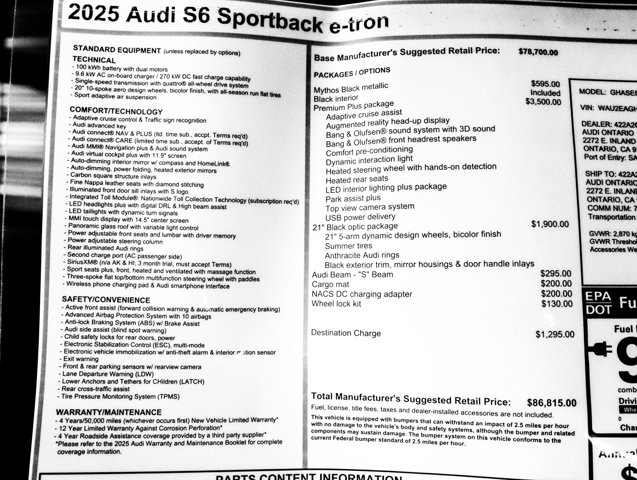 2025 Audi S6 e-tron Premium Plus at Audi Ontario