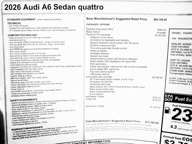 2026 Audi A6 Premium Plus at Audi Ontario