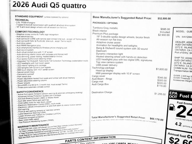 2026 Audi Q5 Premium Plus at Audi Ontario