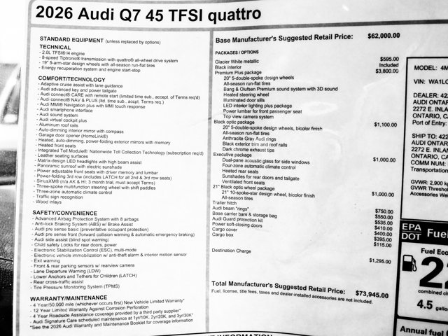 2026 Audi Q7 45 Premium Plus at Audi Ontario