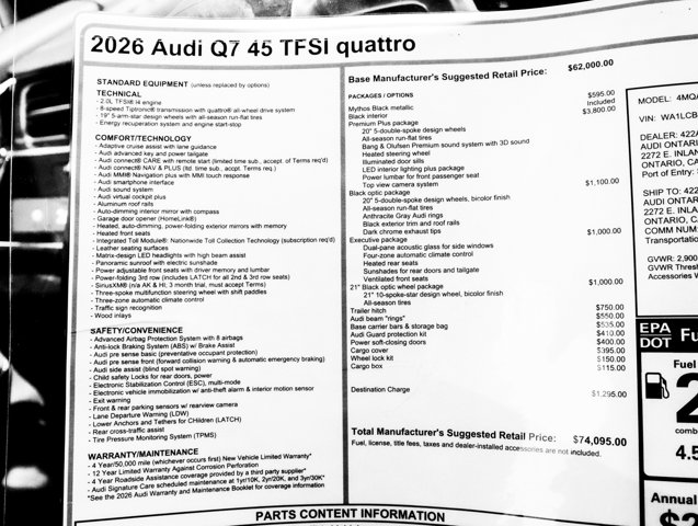 2026 Audi Q7 45 Premium Plus at Audi Ontario