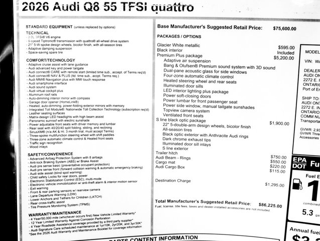 2026 Audi Q8 Premium Plus at Audi Ontario