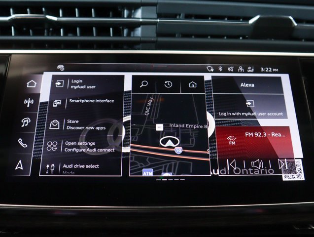 Power Liftgate Rear Cargo Access, Remote Keyless Entry w/Integrated Key Transmitter, 4 Door Curb/Courtesy, Illuminated Entry and Panic Button, Audi parking system plus Front And Rear Parking Sensors, Leatherette Door Trim Insert, Day-Night Auto-Dimming Rear view Mirror, Valet Function, Trunk/Hatch Auto-Latch, Tailgate/Rear Door Lock Included w/ Power Door Locks, Smart Device Integration, Side Impact Beams. This Audi Q8 has a strong Intercooled Turbo Gas/Electric V-6 3.0 L/183 engine powering this Automatic transmission.* Experience a Fully-Loaded Audi Q8 Premium Plus *Rain Detecting Variable Intermittent Wipers w/ Heated Jets, Power Door Locks w/ Autolock Feature, Power 1st Row Windows w/ Front And Rear 1-Touch Up/Down, Perimeter/Approach Lights, Outside Temp Gauge, Outboard Front Lap And Shoulder Safety Belts w/ Rear Center 3 Point, Height Adjusters and Pretensioners, Multi-link rear suspension, Manual w/ Tilt Front Head Restraints and Manual Adjustable Rear Head Restraints, Lip Spoiler, LED Brakelights, Leather Steering Wheel, Leather Seating Surfaces, Gauges w/ Speedometer, Odometer, Engine Coolant Temp, Tachometer, Trip Odometer and Trip Computer, Gas-Pressurized Shock Absorbers, Full Cloth Headliner, Front And Rear Fog Lamps, Front and Rear Anti-Roll Bars, Fade-To-Off Interior Lighting, Engine Auto Stop-Start Feature, Electronic Stability Control (ESC) And Roll Stability Control (RSC).* Visit Us Today *Come in for a quick visit at Audi Ontario, 2272 E. Inland Empire Blvd, Ontario, CA 91764 to claim your Audi Q8!