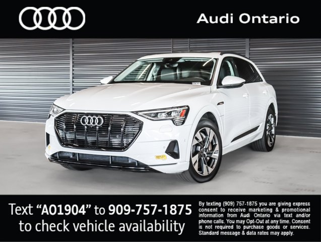 SUMMER SALES CLEARANCE EVENT!, AUDI ONTARIO, ONE OWNER, NAVIGATION, BLACK OPTIC EXT PACKAGE, 1.99% OAC FINANCING UP TO 72 MOS, Audi Active Lane Assist w/Emergency Assist, Audi Adaptive Cruise Assist, Audi e-tron Beam Front & Rear Doors, Auto High-beam Headlights, Auto-dimming door mirrors, Auto-leveling suspension, Black Optic Exterior Package, Convenience Plus Package, Exterior Parking Camera Rear, Front dual zone A/C, Front fog lights, Garage door transmitter: HomeLink, Heated 8-Way Power Front Seats, Heated steering wheel, Leather Seating Surfaces, Navigation system: Audi MMI Navigation plus with Touch Response, Power Liftgate, Power moonroof: Panoramic, Radio: HD FM/Sirius Satellite, Steering wheel mounted audio controls, Top View Camera System, Towing Package, Wheels: 20 5-Double-Spoke Bi-Color Design. quattro e-tron Glacier White Metallic 2021 Audi Premium quattro Single-Speed Automatic Electric MotorRecent Arrival! 78/77 City/Highway MPG
