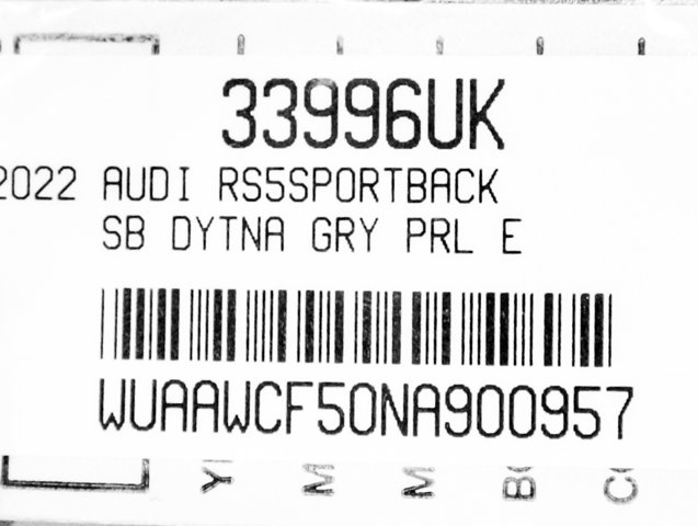 AUDI ONTARIO, ONE OWNER, DYNAMIC PACKAGE, RS DRIVER ASSISTANCE PACKAGE, BLACK OPTIC PACKAGE, NAVIGATION PACKAGE, RS DESIGN PACKAGE, SIDE ASSIST PACKAGE, SPRING CLEANING SALES EVENT, Adaptive Cruise Control w/Traffic Jam Assist, Audi Active Lane Assist, Audi Connect PRIME & PLUS, Audi Pre-Sense Rear, Audi Side Assist, Black Optic Package, Dynamic Package, Exterior Mirror Housings in High-Gloss Black, Exterior Parking Camera Rear, Fine Nappa Leather Seating Surfaces, Front fog lights, Front Spoiler Trim in High-Gloss Black, Hands-On Detection Steering Wheel, Head-Up Display, Heated rear seats, Heated S Sport Front Seats, Heated steering wheel, High-Gloss Black Exterior Elements, Matte Alu Optic Exterior Mirror Housing, MMI Navigation Plus, Navigation Package, Park Assist, Power Liftgate, Power moonroof, Rear Diffuser Trim in High-Gloss Black, Red Brake Calipers, RS Design Package, RS Driver Assistance Package, RS Logo Floor Mats w/Red Edging, RS Sport Exhaust System w/Black Tips, RS Sport Suspension Plus w/Dynamic Ride Control, Seat Belts w/Red Edging, Side Assist Package, Top View Camera System, Traffic Sign Recognition, Wheels: 20 5-Arm-Flag Forged Design. quattro RS 5 Clean CARFAX. Daytona Gray Pearl Effect 2022 Audi 2.9T quattro 8-Speed Automatic with Tiptronic 2.9L V6 Turbocharged DOHC 24V LEV3-ULEV70 444hp