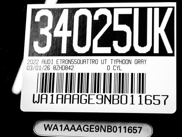 AUDI ONTARIO, ONE OWNER, NAVIGATION, SPRING CLEANING SALES EVENT, Audi e-tron Beam Front & Rear Doors, Audi smartphone interface (Apple CarPlay/Android Auto), Auto High-beam Headlights, Auto-dimming Rear-View mirror, Auto-leveling suspension, Exterior Parking Camera Rear, Front dual zone A/C, Front fog lights, Garage door transmitter: HomeLink, Heated 8-Way Power Front Seats, Heated steering wheel, Leather Seating Surfaces, Memory seat, Navigation system: Audi MMI Navigation plus with Touch Response, Power driver seat, Power Liftgate, Power moonroof: Panoramic, Radio: Audi Sound System, Security system, Steering wheel memory, Steering wheel mounted audio controls, Turn signal indicator mirrors, Wheels: 20 5-Arm-Dynamic Design Bi-Color Finish. quattro e-tron Typhoon Gray Metallic 2022 Audi Premium quattro Single-Speed Automatic Electric MotorRecent Arrival! Odometer is 6476 miles below market average! Priced below KBB Fair Purchase Price! 78/77 City/Highway MPG