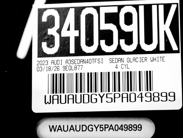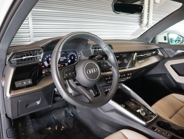 SPRING CLEANING SALES EVENT, AUDI ONTARIO, ONE OWNER, CONVENIENCE PACKAGE, Parchment Beige/Steel Gray Stitching w/Leather Seating Surfaces, Alarm System w/Motion Sensor, Audi Advanced Key, Audi Side Assist, Audi Sound System, Auto High-beam Headlights, Auto-Dimming Interior Mirror w/Compass, Auto-Dimming Power Folding Exterior Mirrors, Convenience Package, Exterior Parking Camera Rear, Front dual zone A/C, Heated Front Bucket Seats, Leather Seating Surfaces, Memory for Driver's Seat, Park Assist, Power moonroof, Radio: Audi Sound System, Rain sensing wipers, SiriusXM w/360L, Speed-Sensitive Wipers, Steering wheel mounted audio controls, Turn signal indicator mirrors, Wheels: 17 5-Arm Design, Wireless Phone Charging Pad. A3 Clean CARFAX. Glacier White Metallic 2023 Audi 40 Premium FrontTrak 7-Speed Automatic S tronic 2.0L 4-Cylinder TFSIRecent Arrival! 28/38 City/Highway MPG