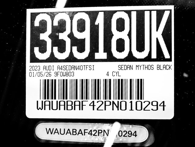 AUDI ONTARIO, ONE OWNER, CONVENIENCE PACKAGE, 7-Speed Automatic S tronic, quattro, Black w/Leather Seating Surfaces, 18 Wheel Package, Adaptive Cruise Control, Alarm System w/Motion Sensor, Audi Advanced Key, Audi Beam-Rings, Audi Side Assist w/Pre Sense Rear, Audi smartphone interface (Apple CarPlay/Android Auto), Auto High-beam Headlights, Auto-Dimming Exterior Mirrors w/Memory, Auto-dimming Rear-View mirror, Convenience Package, Exterior Parking Camera Rear, Front fog lights, Garage door transmitter: HomeLink, Heated Front Bucket Seats, Heated Steering Wheel, Leather Seating Surfaces, Leather steering wheel, Memory for Driver's Seat, Parking System Plus, Power moonroof, Rain sensing wipers, SiriusXM w/360L, Steering wheel mounted audio controls, Turn signal indicator mirrors, Wheels: 18 10-Spoke-Dynamic Design Bi-Color Finish. quattro A4 Clean CARFAX. Mythos Black Metallic 2023 Audi 40 Premium quattro 7-Speed Automatic S tronic 2.0L TFSIRecent Arrival! 24/33 City/Highway MPG