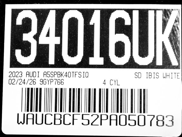 PRESIDENTS DAY SALE, AUDI ONTARIO, ONE OWNER, PREMIUM PLUS PACKAGE, BANG & OLUFSEN PREMIUM SOUND SYSTEM, NAVIGATION PACKAGE, Adaptive Cruise Control, Alarm System w/Motion Sensor, Audi Advanced Key, Audi Beam-Rings, Audi Phone Box, Audi Side Assist w/Pre Sense Rear, Audi Virtual Cockpit Plus, Auto High-beam Headlights, Auto-Dimming Exterior Mirrors w/Memory, Bang & Olufsen Sound System w/3D Sound, Convenience Package, Driver Seat Memory, Exterior Parking Camera Rear, Front dual zone A/C, Front fog lights, Garage door transmitter: HomeLink, Hands-On Detection Steering Wheel, Heated Front Bucket Seats, Heated Steering Wheel, Leather Seating Surfaces, Navigation System, Parking System Plus (Front/Rear Acoustic Sensors), Power Folding Exterior Mirrors, Power Liftgate, Power moonroof, Premium Plus, Rain sensing wipers, SiriusXM w/360L, Steering wheel mounted audio controls, Top View Camera System, Traffic Jam Assist, Turn signal indicator mirrors, Wheels: 18 5-V-Spoke-Y Design. quattro A5 Sportback Ibis White 2023 Audi Premium Plus quattro 7-Speed Automatic S tronic 2.0L 4-Cylinder TFSIRecent Arrival! 24/33 City/Highway MPG