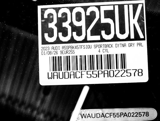 AUDI ONTARIO, ONE OWNER, CONVENIENCE PACKAGE, Adaptive Cruise Control, Alarm System w/Motion Sensor, Audi Advanced Key, Audi Beam-Rings, Audi Side Assist w/Pre Sense Rear, Auto High-beam Headlights, Auto-Dimming Exterior Mirrors w/Memory, Convenience Package, Driver Seat Memory, Exterior Parking Camera Rear, Front fog lights, Garage door transmitter: HomeLink, Heated Front Sport Seats, Heated Steering Wheel, Leather Seating Surfaces, Parking System Plus (Front/Rear Acoustic Sensors), Power Liftgate, Power moonroof, Rain sensing wipers, SiriusXM w/360L, Steering wheel mounted audio controls, Turn signal indicator mirrors, Wheels: 18 5-Double-Spoke Design. quattro A5 Sportback Clean CARFAX. Daytona Gray Pearl Effect 2023 Audi 45 S line Premium quattro 7-Speed Automatic S tronic 2.0L 4-Cylinder TFSIRecent Arrival! 24/32 City/Highway MPG