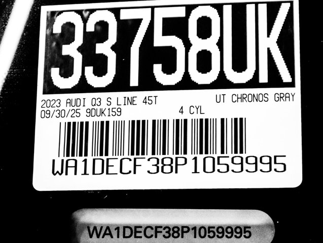 SUMMER SALES CLEARANCE EVENT!, AUDI ONTARIO, ONE OWNER, S LINE PACKAGE, 19 Wheel Package, Audi smartphone interface (Apple CarPlay/Android Auto), Exterior Parking Camera Rear, Front dual zone A/C, Front fog lights, Heated door mirrors, Heated Front Bucket Seats, Leather Seating Surfaces, LED Interior Lighting Package, Power Liftgate, Power moonroof: Panoramic, Rain sensing wipers, Steering wheel mounted audio controls, Turn signal indicator mirrors, Wheels: 19 5-Double-Spoke Dynamic Design. S Line quattro Q3 Clean CARFAX. Chronos Gray Metallic 2023 Audi Premium quattro 8-Speed Automatic with Tiptronic 2.0L 4-Cylinder TFSIRecent Arrival! 21/28 City/Highway MPG