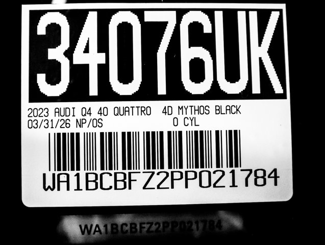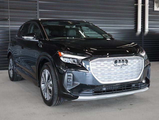 SPRING CLEANING SALES EVENT, PREMIUM PLUS PACKAGE, NAVIGATION, SONOS PREMIUM SOUND SYSTEM, Adaptive Cruise Assist w/Lane Guidance, Alarm System w/Motion Sensor, Audi Advanced Key, Audi Beam-Rings, Audi Connect PLUS, Audi MMI Navigation Plus, Audi Virtual Cockpit Plus, Auto High-beam Headlights, Auto-Dimming Interior Mirror w/Compass, Auto-Dimming Power Folding Exterior Mirrors, Convenience Package, Dual-Pane Acoustic Glass for Front Side Windows, Exterior Parking Camera Rear, Front dual zone A/C, Hands-Free Power Tailgate, Heated Front Seats, Heated Steering Wheel, Leather Seating Surfaces, LED Interior Lighting Plus Package, Memory for Driver's Seat, Navigation System, Park Assist Plus, Power Front Passenger Seat, Power Liftgate, Power moonroof: Panoramic, Premium Plus, Projection Light in Exterior Mirrors, Rain sensing wipers, SiriusXM w/360L, SONOS Premium Sound System, Steering wheel mounted audio controls, Traffic Sign Recognition, Turn signal indicator mirrors, Wheels: 19 5-W-Spoke Aero Design, Wireless Phone Charging Pad. Q4 e-tron Mythos Black Metallic 2023 Audi Premium Plus RWD Single-Speed Automatic Electric MotorRecent Arrival! 112/94 City/Highway MPG