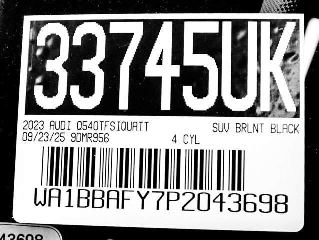 SUMMER SALES CLEARANCE EVENT!, AUDI ONTARIO, ONE OWNER, PREMIUM PLUS, NAVIGATION PACKAGE, Black w/Leather Seating Surfaces, Audi Active Lane Assist, Audi Beam-Rings, Audi Connect PLUS, Audi MMI Navigation Plus, Audi Virtual Cockpit Plus, Auto High-beam Headlights, Auto-Dimming Power Folding Exterior Mirrors, Bang & Olufsen Sound System w/3D Sound, Convenience Package, Driver Seat & Mirror Memory, Exterior Parking Camera Rear, Front dual zone A/C, Front fog lights, Hands-On Detection Steering Wheel, Heated 8-Way Power Front Bucket Seats, Heated Steering Wheel, Leather Seating Surfaces, Leatherette Covered Center Console & Door Armrests, Navigation Package, Panoramic Sunroof, Power Adjustable Steering Column, Power Liftgate, Premium Plus Package, Rain sensing wipers, Security system, SiriusXM w/360L, Top View Camera System, Traffic Jam Assist, Wheels: 19 5-Arm-Pylon Design w/Matte Finish. quattro Q5 Clean CARFAX. Brilliant Black 2023 Audi 40 Premium Plus quattro 7-Speed Automatic S tronic 2.0L TurbochargedRecent Arrival! Odometer is 3286 miles below market average! 23/29 City/Highway MPG