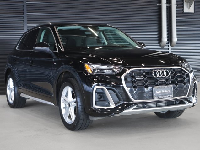 PRESIDENTS DAY SALE, AUDI ONTARIO, ONE OWNER, PREMIUM PLUS PACKAGE, NAVIGATION PACKAGE, 2.0L Turbocharged, Audi Active Lane Assist, Audi Advanced Key, Audi Connect PRIME & PLUS, Auto High-beam Headlights, Auto-Dimming Heated & Pwr Folding Exterior Mirrors, Auto-dimming Rear-View mirror, Bang & Olufsen Sound System w/3D Sound, Convenience Package, Deluxe Pre-Entry Climate Control, Driver Seat Memory, Exterior Parking Camera Rear, Front fog lights, Garage door transmitter: HomeLink, Hands-On Detection Steering Wheel, Heated 8-Way Power Front Seats, Heated Steering Wheel, Leather Seating Surfaces, MMI Navigation Plus, Navigation Package, Panoramic Sunroof, Power Adjustable Steering Column, Power Liftgate, Premium Plus Package, Rain sensing wipers, Security system, SiriusXM w/360L, Steering wheel mounted audio controls, Top View Camera System, Traffic Jam Assist, Turn signal indicator mirrors, Wheels: 19 5-Double-Spoke-Star Design. S Line Q5 e Mythos Black Metallic 2023 Audi 55 Premium Plus quattro 7-Speed Automatic S tronic 2.0L Turbocharged