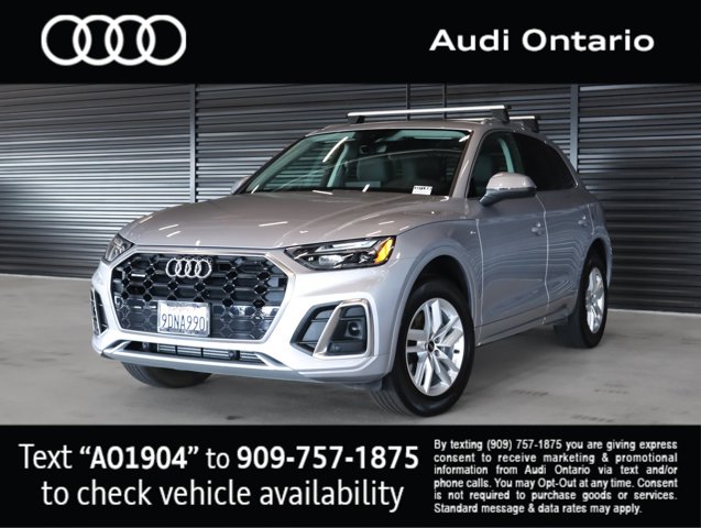 SUMMER SALES CLEARANCE EVENT!, AUDI ONTARIO, ONE OWNER, Black w/Leather Seating Surfaces, Auto-Dimming Power Folding Exterior Mirrors, Auto-dimming Rear-View mirror, Convenience Package, Driver Seat Memory, Exterior Parking Camera Rear, Garage door transmitter: HomeLink, Heated 8-Way Power Front Bucket Seats, Heated front seats, Heated Steering Wheel, Leather Seating Surfaces, Panoramic Sunroof, Power Liftgate, Remote keyless entry, Security system, SiriusXM w/360L, Steering wheel mounted audio controls, Turn signal indicator mirrors, Wheels: 18 5-Arm-Turbine Design. quattro Q5 Clean CARFAX. New Price! Florett Silver Metallic 2023 Audi 45 S line Premium quattro 7-Speed Automatic S tronic 2.0L TurbochargedOdometer is 15802 miles below market average! 22/29 City/Highway MPG