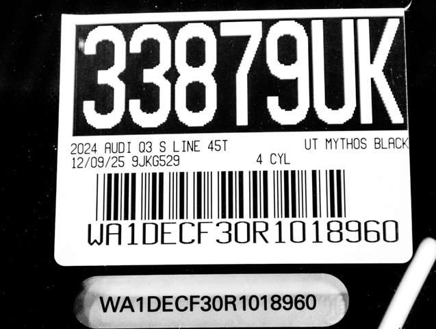 AUDI ONTARIO, ONE OWNER, SEASON OF AUDI SALES EVENT!!!, 19 Wheel Package, Alarm w/Motion Sensor, Audi Advanced Key, Audi smartphone interface (Apple CarPlay/Android Auto), Auto High-beam Headlights, Auto-Dimming Power-Folding Exterior Mirrors, Auto-Dimming Rear-View Mirror, Convenience Package, Driver Seat Memory, Exterior Parking Camera Rear, Front dual zone A/C, Front fog lights, Garage Door Opener (HomeLink), Heated Front Bucket Seats, Leather Seating Surfaces, LED Interior Lighting Package, Power Liftgate, Power moonroof: Panoramic, Rain sensing wipers, SiriusXM, Steering wheel mounted audio controls, Turn signal indicator mirrors, Wheels: 19 5-Double-Spoke Dynamic Design, Wireless Phone Charging Pad. S Line quattro Q3 Clean CARFAX. Mythos Black Metallic 2024 Audi Premium quattro 8-Speed Automatic with Tiptronic 2.0L 4-Cylinder TFSIRecent Arrival! Odometer is 7058 miles below market average! 20/28 City/Highway MPG