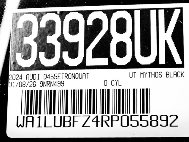CERTIFIED PRE-OWNED!!, AUDI ONTARIO, ONE OWNER, PREMIUM PLUS PACKAGE, SONOS PREMIUM SOUND, Alarm System w/Motion Sensor, Audi Advanced Key, Audi Connect NAV & PLUS, Audi MMI Navigation Plus, Audi Virtual Cockpit Plus, Auto High-beam Headlights, Auto-Dimming Power Folding Exterior Mirrors, Auto-Dimming Rear-View Mirror, Convenience Package, Dual-Pane Acoustic Glass for Front Side Windows, Exterior Parking Camera Rear, Garage Door Opener, Hands-Free Power Tailgate, Heat Pump, Heated Front Seats, Heated Steering Wheel, Leather Seating Surfaces, LED Interior Lighting Plus Package, Memory for Driver's Seat, Park Assist Plus, Power Front Passenger Seat, Power Liftgate, Power moonroof, Premium Plus, Projection Light in Exterior Mirrors, Rain sensing wipers, Security system, SiriusXM w/360L, SONOS Premium Sound System, Steering wheel mounted audio controls, Traffic Sign Recognition, Wheels: 19 5-Arm Design, Wireless Phone Charging Pad. quattro Q4 e-tron Clean CARFAX. Certified. Mythos Black Metallic 2024 Audi Premium Plus quattro Single-Speed Automatic Electric MotorRecent Arrival! 107/92 City/Highway MPGAudi Certified pre-owned Details:* Vehicle History* Roadside Assistance* Certified pre-owned Limited Warranty: For all CPO sales on or after 8/1/23, if New Vehicle Limited Warranty (NVLW) coverage remains at time of CPO purchase, CPO Limited Warranty Coverage commences upon expiration of NVLW and continues for a period of 1 year or 20,000 miles, whichever occurs first. If NVLW coverage has expired at time of CPO purchase, CPO Limited Warranty coverage commences at time of purchase and continues for 1 year or 20,000 miles, whichever occurs first. Roadside Assistance for 1 year with unlimited miles, whichever occurs first. Effective 8/1/23 onward, private party transfers no longer accepted, eligible for previous CPO customers with sale dates prior to 8/1/23 to utilize if they so choose.* 125+ Point Inspection* Warranty Deductible: $0