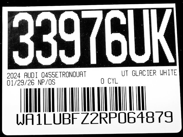 AUDI ONTARIO, ONE OWNER, PREMIUM PLUS PACKAGE, BLACK OPTIC PACKAGE, NAVIGATION, SPRING CLEANING SALES EVENT, Alarm System w/Motion Sensor, Audi Advanced Key, Audi Connect NAV & PLUS, Audi MMI Navigation Plus, Audi Virtual Cockpit Plus, Auto High-beam Headlights, Auto-Dimming Power Folding Exterior Mirrors, Auto-Dimming Rear-View Mirror, Black Exterior Elements, Black Optic Package, Black Roof Rails, Convenience Package, Dual-Pane Acoustic Glass for Front Side Windows, Exterior Parking Camera Rear, Front dual zone A/C, Garage Door Opener, Hands-Free Power Tailgate, Heated Front Seats, Heated Steering Wheel, Leather Seating Surfaces, LED Interior Lighting Plus Package, Memory for Driver's Seat, Navigation System, Park Assist Plus, Power Front Passenger Seat, Power Liftgate, Power moonroof, Premium Plus, Projection Light in Exterior Mirrors, Rain sensing wipers, SiriusXM w/360L, Steering wheel mounted audio controls, Traffic Sign Recognition, Turn signal indicator mirrors, Wheels: 20 5-Y-Spoke Design w/Bi-Color Finish, Wireless Phone Charging Pad. quattro Q4 e-tron Clean CARFAX. Glacier White Metallic 2024 Audi Premium Plus quattro Single-Speed Automatic Electric MotorOdometer is 5188 miles below market average! 107/92 City/Highway MPG