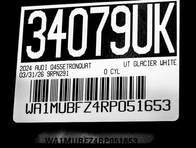 CERTIFIED PRE-OWNED!!, SPRING CLEANING SALES EVENT, ONE OWNER, AUDI ONTARIO, PRESTIGE PACKAGE, SONOS PREMIUM SOUND SYSTEM, BLACK OPTIC PACKAGE, NAVIGATION, Alarm System w/Motion Sensor, Animation for Headlights & Taillights, Audi Advanced Key, Audi Beam-Rings, Audi Connect NAV & PLUS, Audi MMI Navigation Plus, Audi Virtual Cockpit Plus, Augmented Reality Head-Up Display, Auto High-beam Headlights, Auto-Dimming Power Folding Exterior Mirrors, Auto-Dimming Rear-View Mirror, Black Exterior Elements, Black Optic Package, Black Roof Rails, Convenience Package, Dual-Pane Acoustic Glass for Front Side Windows, Exterior Parking Camera Rear, Garage Door Opener, Hands-Free Power Tailgate, Headlamp Washer System, Heat Pump, Heated Front Seats, Heated Steering Wheel, Heated Windshield, Leather Seating Surfaces, LED Interior Lighting Plus Package, Matrix-Design LED Headlights, Memory for Driver's Seat, Navigation System, Park Assist Plus, Power Front Passenger Seat, Power Liftgate, Power moonroof, Prestige, Projection Light in Exterior Mirrors, Rain sensing wipers, SiriusXM w/360L, SONOS Premium Sound System, Steering wheel mounted audio controls, Traffic Sign Recognition, Trailer Hitch (2,650 lbs Towing Capacity), Turn signal indicator mirrors, Wheels: 20 5-Y-Spoke Design w/Bi-Color Finish, Wireless Phone Charging Pad. quattro Q4 e-tron Clean CARFAX. Certified. Glacier White Metallic 2024 Audi Prestige quattro Single-Speed Automatic Electric MotorRecent Arrival! 107/92 City/Highway MPGAudi Certified pre-owned Details:* Certified pre-owned Limited Warranty: For all CPO sales on or after 8/1/23, if New Vehicle Limited Warranty (NVLW) coverage remains at time of CPO purchase, CPO Limited Warranty Coverage commences upon expiration of NVLW and continues for a period of 1 year or 20,000 miles, whichever occurs first. If NVLW coverage has expired at time of CPO purchase, CPO Limited Warranty coverage commences at time of purchase and continues for 1 year or 20,000 miles, whichever occurs first. Roadside Assistance for 1 year with unlimited miles, whichever occurs first. Effective 8/1/23 onward, private party transfers no longer accepted, eligible for previous CPO customers with sale dates prior to 8/1/23 to utilize if they so choose.* 125+ Point Inspection* Warranty Deductible: $0* Roadside Assistance* Vehicle History