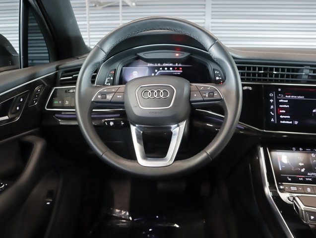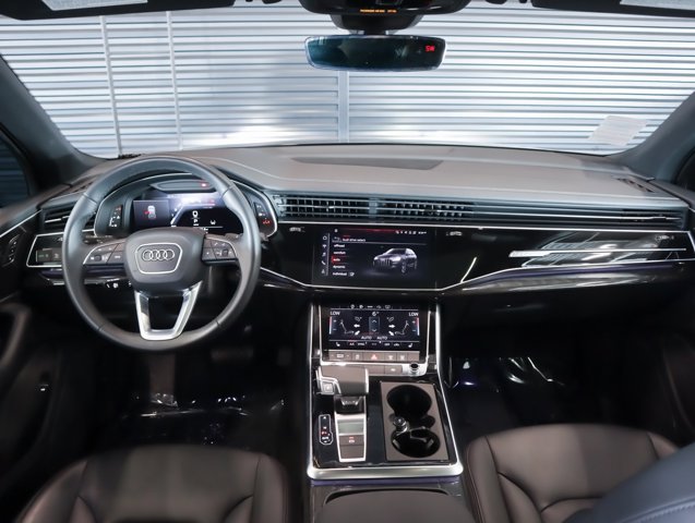 AUDI ONTARIO, ONE OWNER, NAVIGATION, SPRING CLEANING SALES EVENT, 3rd row seats: bench, AM/FM radio: SiriusXM w/ 360L, Auto High-beam Headlights, Auto-dimming Rear-View mirror, Exterior Parking Camera Rear, Front dual zone A/C, Front fog lights, Garage door transmitter: HomeLink, Heated Front Bucket Seats, Leather Seating Surfaces, Memory seat, Navigation system: Audi MMI Navigation plus with Touch Response, Power driver seat, Power Liftgate, Power moonroof: Panoramic, Rain sensing wipers, Security system, Steering wheel mounted audio controls, Turn signal indicator mirrors, Wheels: 19 5-Arm-Star Design. quattro Q7 Mythos Black Metallic 2024 Audi 45 Premium quattro 8-Speed Automatic with Tiptronic 2.0L 4-Cylinder TFSI