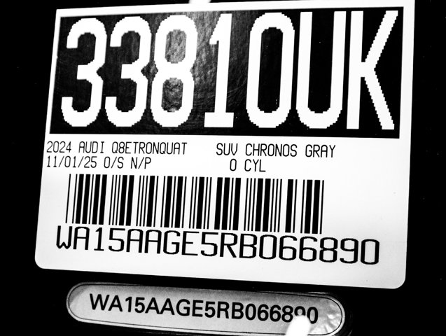 SUMMER SALES CLEARANCE EVENT!, AUDI ONTARIO, ONE OWNER, PREMIUM PLUS, BLACK OPTIC PACKAGE, Animation for Headlights & Taillights, Auto-dimming Rear-View mirror, Bang & Olufsen Sound System w/3D Sound, Black Optic Package, Black Roof Rails, Dual Pane Acoustic Glass for Side Door Windows, Exterior Parking Camera Rear, Front Passenger Power Lumbar, Garage door transmitter: HomeLink, Heated 8-Way Power Front Seats, Heated Rear Seats, Heated steering wheel, High-Gloss Black Front Grille & Mask, High-Gloss Black Rear Diffuser Inlay, High-Gloss Black Window Surrounds, Illuminated Front & Rear Aluminum Door Sill Inlays, Leather Seating Surfaces, LED Interior Lighting Package, Matrix-Design LED Headlights, Navigation system: MMI Navigation plus, Power Liftgate, Power moonroof: Panoramic, Premium Plus Package, Steering wheel mounted audio controls, Top View Camera System, Traffic Sign Recognition, Ventilated Front Seats, Wheels: 21 5-Arm Aero Structure Design, Wireless Phone Charging Pad. quattro Q8 e-tron Clean CARFAX. Chronos Gray Metallic 2024 Audi Premium Plus quattro Single-Speed Automatic Electric ZEVRecent Arrival! 84/90 City/Highway MPG