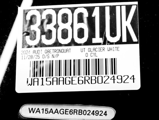 SUMMER SALES CLEARANCE EVENT!, AUDI ONTARIO, ONE OWNER, PREMIUM PLUS PACKAGE, NAVIGATION, Animation for Headlights & Taillights, Audi Rings Beam Front & Rear Doors, Auto High-beam Headlights, Auto-dimming Rear-View mirror, Bang & Olufsen Sound System w/3D Sound, Dual Pane Acoustic Glass for Side Door Windows, Exterior Parking Camera Rear, Front Passenger Power Lumbar, Garage door transmitter: HomeLink, Heated 8-Way Power Front Seats, Heated Rear Seats, Heated steering wheel, Illuminated Front & Rear Aluminum Door Sill Inlays, Leather Seating Surfaces, LED Interior Lighting Package, Matrix-Design LED Headlights, Navigation system: MMI Navigation plus, Power Liftgate, Power moonroof: Panoramic, Premium Plus Package, Steering wheel memory, Steering wheel mounted audio controls, Top View Camera System, Traffic Sign Recognition, Trailer Hitch, Turn signal indicator mirrors, Ventilated Front Seats, Wheels: 20 5-Arm Aero Ring Design, Wireless Phone Charging Pad. quattro Q8 e-tron Glacier White Metallic 2024 Audi Premium Plus quattro Single-Speed Automatic Electric ZEVRecent Arrival! 84/90 City/Highway MPG