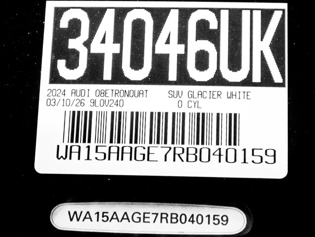 SPRING CLEANING SALES EVENT, AUDI ONTARIO, ONE OWNER, PREMIUM PLUS PACKAGE, NAVIGATION, Animation for Headlights & Taillights, Audi Rings Beam Front & Rear Doors, Auto High-beam Headlights, Bang & Olufsen Sound System w/3D Sound, Dual Pane Acoustic Glass for Side Door Windows, Exterior Parking Camera Rear, Front dual zone A/C, Front Passenger Power Lumbar, Garage door transmitter: HomeLink, Heated 8-Way Power Front Seats, Heated Rear Seats, Heated steering wheel, Illuminated Front & Rear Aluminum Door Sill Inlays, Leather Seating Surfaces, LED Interior Lighting Package, LED Interior Lighting Plus Package, Matrix-Design LED Headlights, Navigation system: MMI Navigation plus, Power Liftgate, Power moonroof: Panoramic, Premium Plus Package, Security system, Steering wheel mounted audio controls, Top View Camera System, Traffic Sign Recognition, Turn signal indicator mirrors, Ventilated Front Seats, Wheels: 20 5-Arm Aero Ring Design, Wireless Phone Charging Pad. quattro Q8 e-tron Glacier White Metallic 2024 Audi Premium Plus quattro Single-Speed Automatic Electric ZEVRecent Arrival! 84/90 City/Highway MPG
