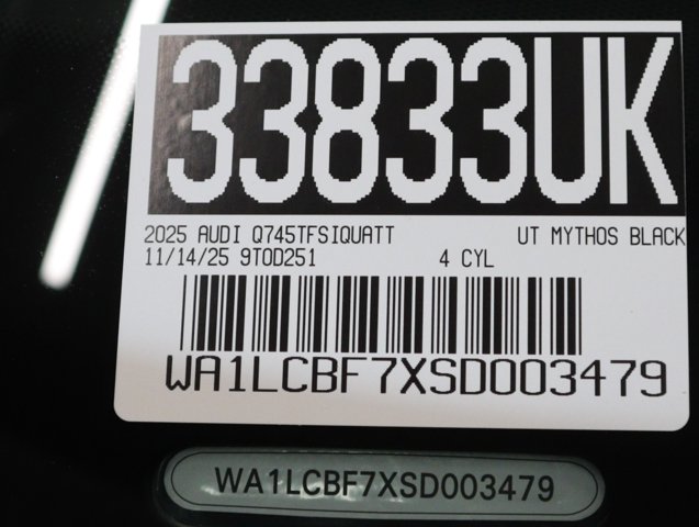 SUMMER SALES CLEARANCE EVENT!, AUDI ONTARIO, ONE OWNER, PREMIUM PLUS, BLACK OPTIC PACKAGE, NAVIGATION, 21 Wheel Package, 3rd row seats: bench, 7-Pin Adapter, Anthracite Gray Audi Rings, Audi Beam Rings, Auto High-beam Headlights, Auto-dimming Rear-View mirror, Bang & Olufsen Premium Sound System w/3D Sound, Black Door Blades, Black Exterior Trim, Black Grille, Black Optic Package, Convenience Package, Convenience Package (DISC), Dark Chrome Exhaust Tips, Exterior Parking Camera Rear, Front fog lights, Garage door transmitter: HomeLink, Heated Front Bucket Seats, Heated Steering Wheel, Illuminated Door Sills, Leather Seating Surfaces, LED Interior Lighting Package Plus, Navigation system: Audi MMI Navigation plus with Touch Response, Power Liftgate, Power moonroof: Panoramic, Premium Plus Package, Rain sensing wipers, Security system, Steering wheel mounted audio controls, Top View Camera System, Trailer Hitch, Wheels: 21 10-Spoke-Star Design Bi-Color, Wireless Phone Charging Pad. quattro Q7 Clean CARFAX. Mythos Black Metallic 2025 Audi 45 Premium Plus quattro 8-Speed Automatic with Tiptronic 2.0L 4-Cylinder TFSIRecent Arrival! 20/26 City/Highway MPG