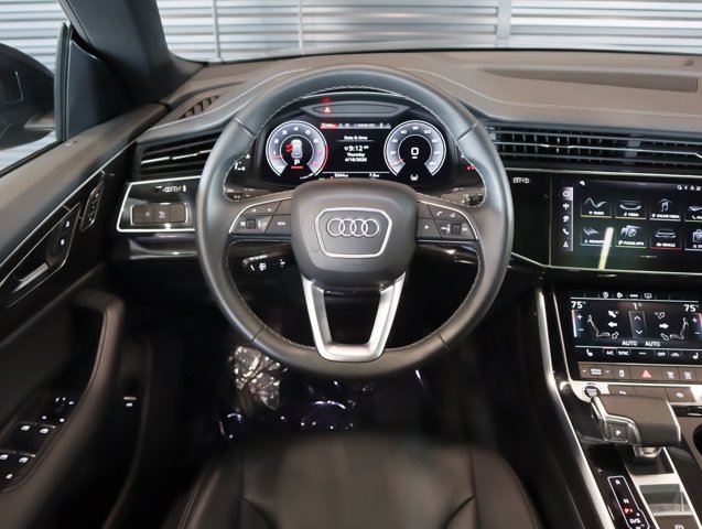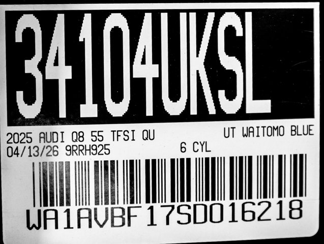 CERTIFIED PRE-OWNED!!, SPRING CLEANING SALES EVENT, AUDI ONTARIO, ONE OWNER, BLACK OPTIC PACKAGE, CONVENIENCE PACKAGE, NAVIGATION, Adaptive suspension, Anthracite Gray Audi Rings, Auto High-beam Headlights, Auto-dimming Rear-View mirror, Black Exterior Trim, Black Optic Package, Convenience Package, Dark Chrome Exhaust Tips, Exterior Parking Camera Rear, Front dual zone A/C, Front fog lights, Garage door transmitter: HomeLink, Heated Front Bucket Seats, Heated Steering Wheel, Leather Seating Surfaces, Navigation system: Audi MMI Navigation with Touch Response, Power Liftgate, Power moonroof: Panoramic, Radio: Audi MMI Navigation Plus with MMI Touch Response, Rain sensing wipers, Security system, Steering wheel memory, Steering wheel mounted audio controls, Top View Camera System with Virtual 360 View, Turn signal indicator mirrors, Wheels: 22 5-Double-Arm Design Bicolor Finish, Wireless Phone Charging Pad. quattro Q8 Clean CARFAX. Certified. Waitomo Blue Metallic 2025 Audi 55 Premium quattro 8-Speed Automatic with Tiptronic 3.0L V6 Turbocharged DOHC 24V LEV3-ULEV70 335hpRecent Arrival!Audi Certified pre-owned Details:* Warranty Deductible: $0* Vehicle History* Roadside Assistance* Certified pre-owned Limited Warranty: For all CPO sales on or after 8/1/23, if New Vehicle Limited Warranty (NVLW) coverage remains at time of CPO purchase, CPO Limited Warranty Coverage commences upon expiration of NVLW and continues for a period of 1 year or 20,000 miles, whichever occurs first. If NVLW coverage has expired at time of CPO purchase, CPO Limited Warranty coverage commences at time of purchase and continues for 1 year or 20,000 miles, whichever occurs first. Roadside Assistance for 1 year with unlimited miles, whichever occurs first. Effective 8/1/23 onward, private party transfers no longer accepted, eligible for previous CPO customers with sale dates prior to 8/1/23 to utilize if they so choose.* 125+ Point Inspection